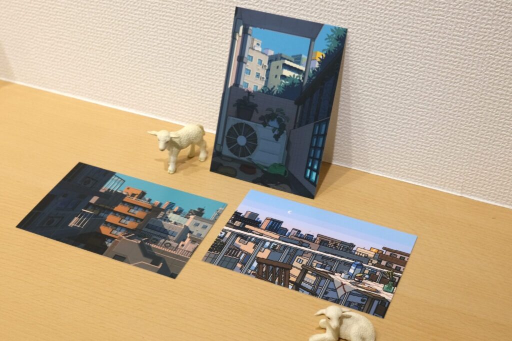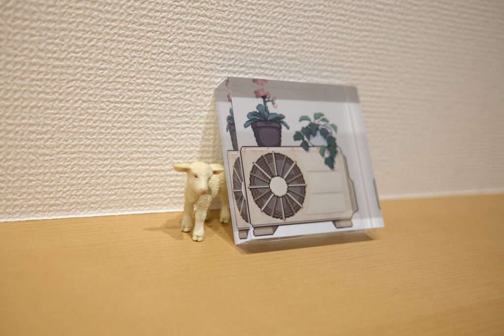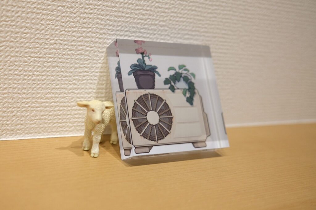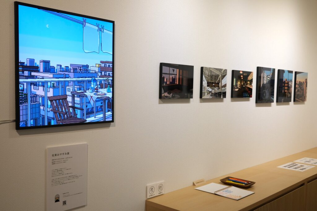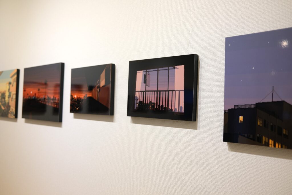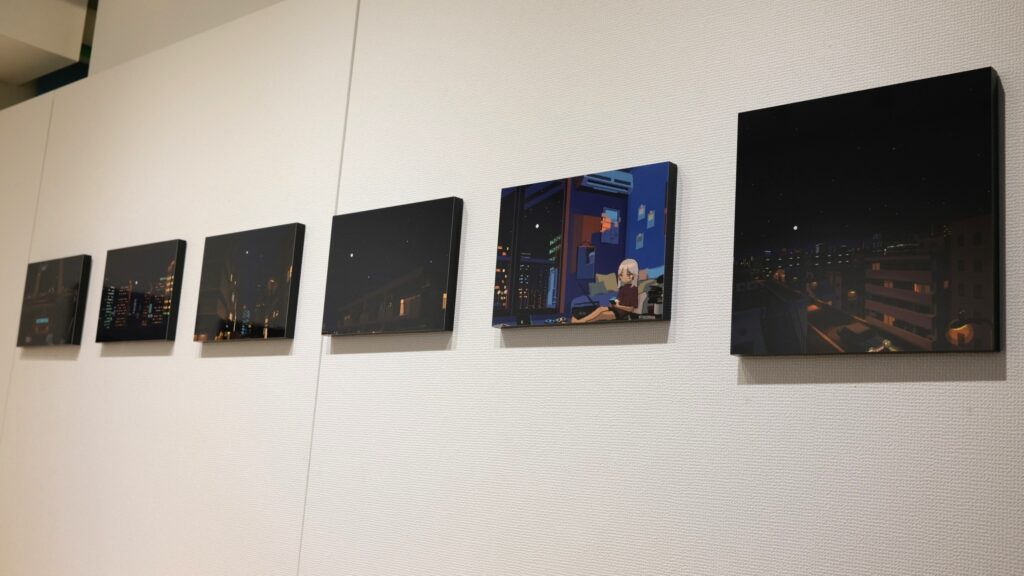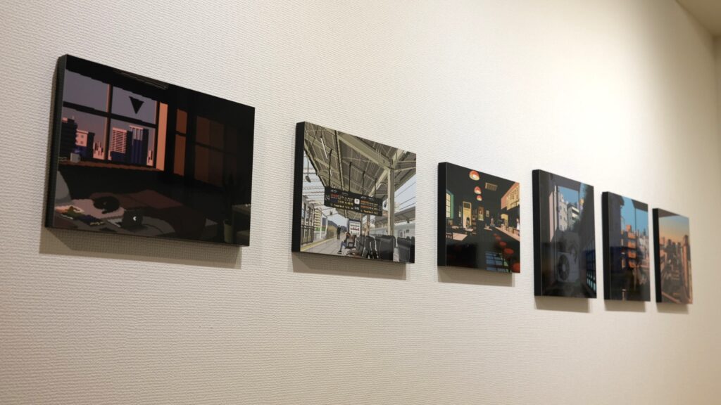 ピクセルアートで作られた日常や街並みの風景がA3、A3SQ、A4サイズのWALL DECORで展示されました。懐かしさを感じるような温かみのあるアートをプリントし展示するとこによって、遠くから全体の景色を眺めるように見ることや、近くで作品ごとの光の表現や建物の細部などをよりじっくり鑑賞することができ、デジタルとはまた違った楽しみを感じることができました。