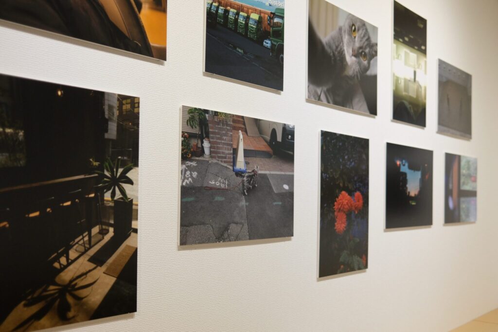 ご自身が撮影された作品がA3サイズの写真パネルで展示され、大きくプリントすることによって真奈さんの作品が生み出す雰囲気を全身で感じられる心地良い展示となりました。作品には一つ一つタイトルがつけられ、作品単体で楽しめるだけでなく、作品とタイトルを照らし合わせながら鑑賞することができました。また在廊時に開催されたチェキ会では、ファンの方々と真奈さんが作品について話し合うなどより作品への理解を深められるイベントとなりました。