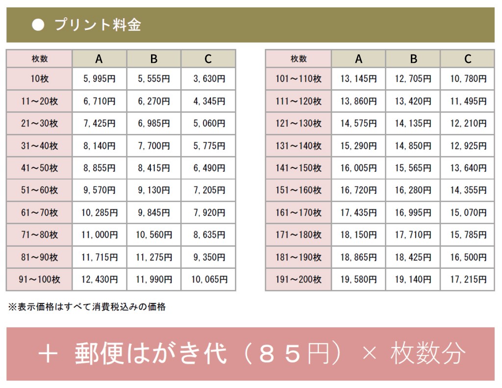 ●料金は[プリント料金]+[郵便はがき代]