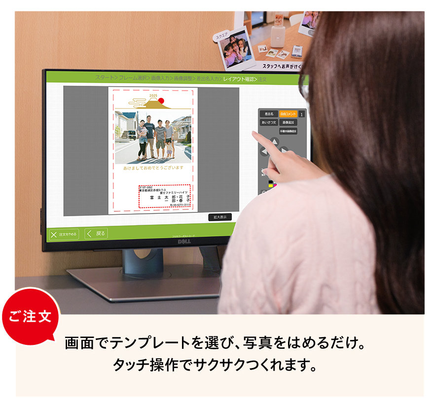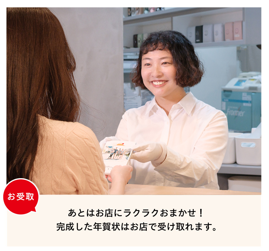 そういった方には、宛名印刷サービスがおすすめです。お店に住所録のデータをお持ち込み、または、WEBサイトで事前に住所録データをご登録していただくとご利用いただけます。