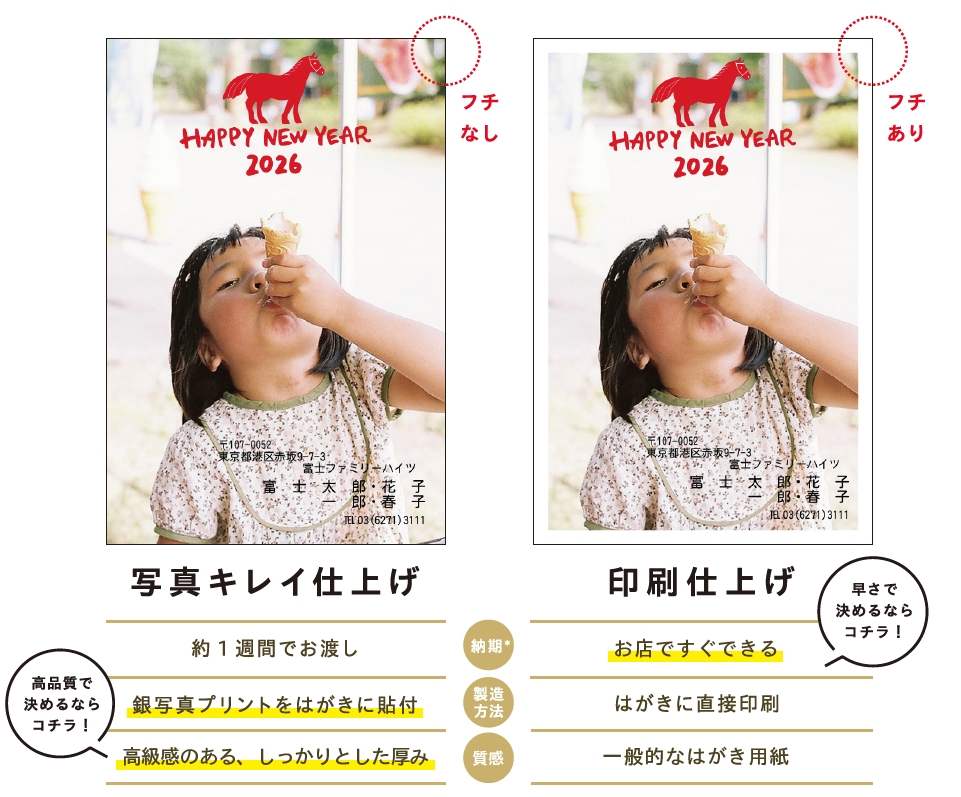 ※ 私製はがき(年賀/一般)は、郵便はがき代はかかりませんが、切手が別途必要になります。