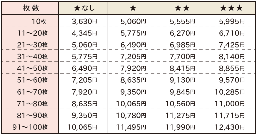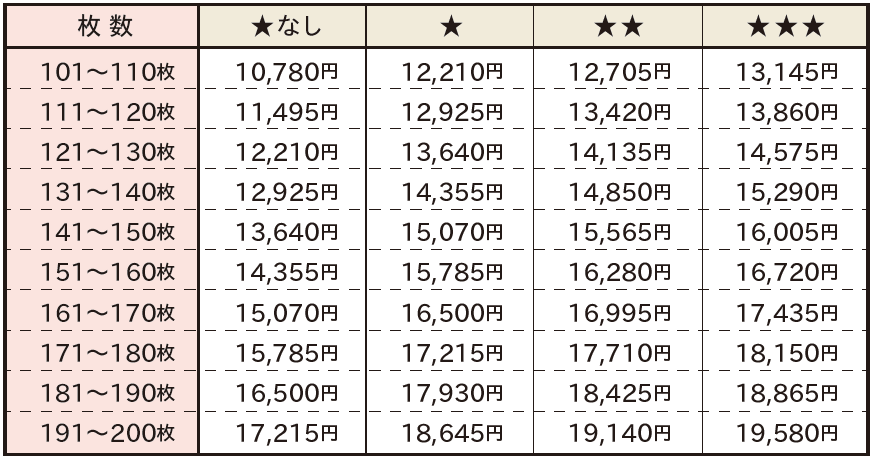 ※ 201枚以上の場合、10枚追加ごとにプラス715円
